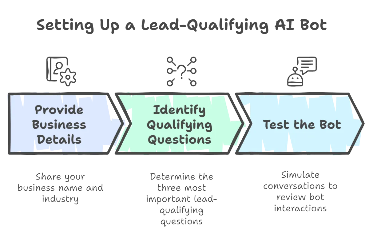 Use the chat box to simulate conversations and review how the bot interacts with leads.